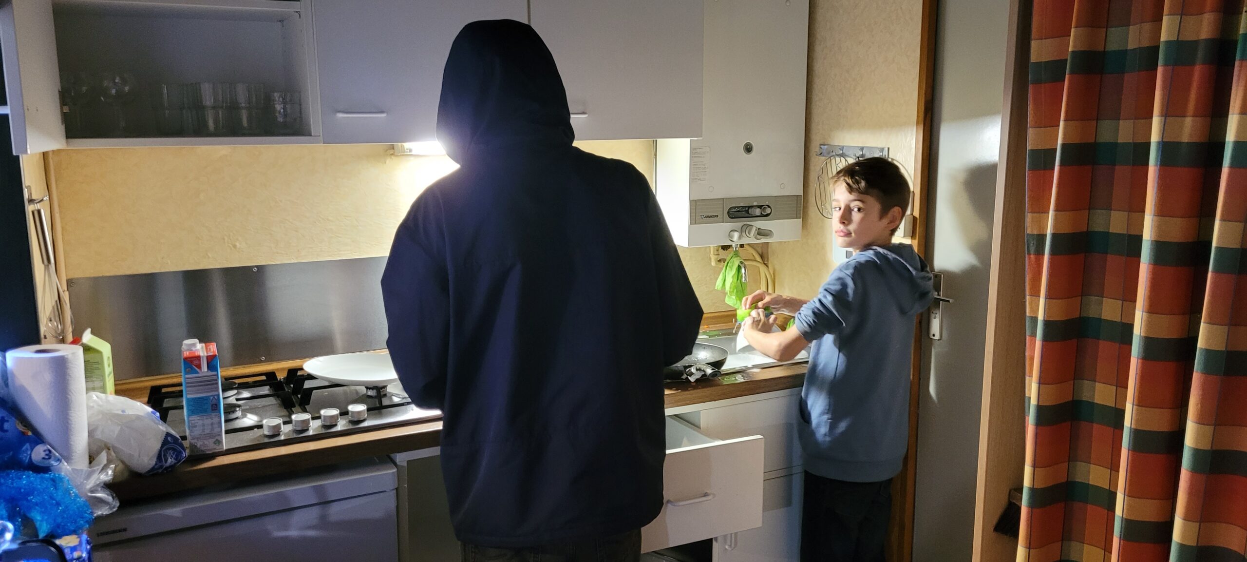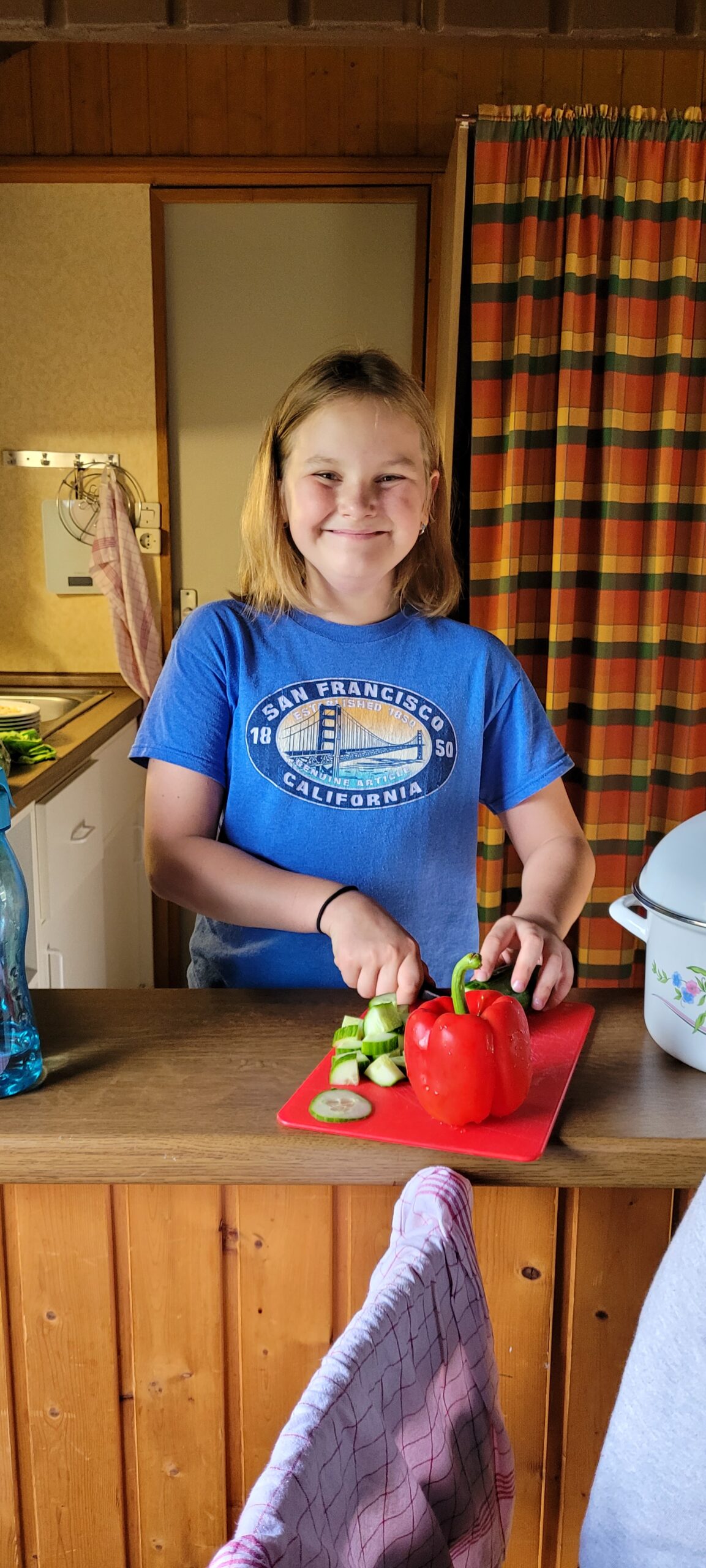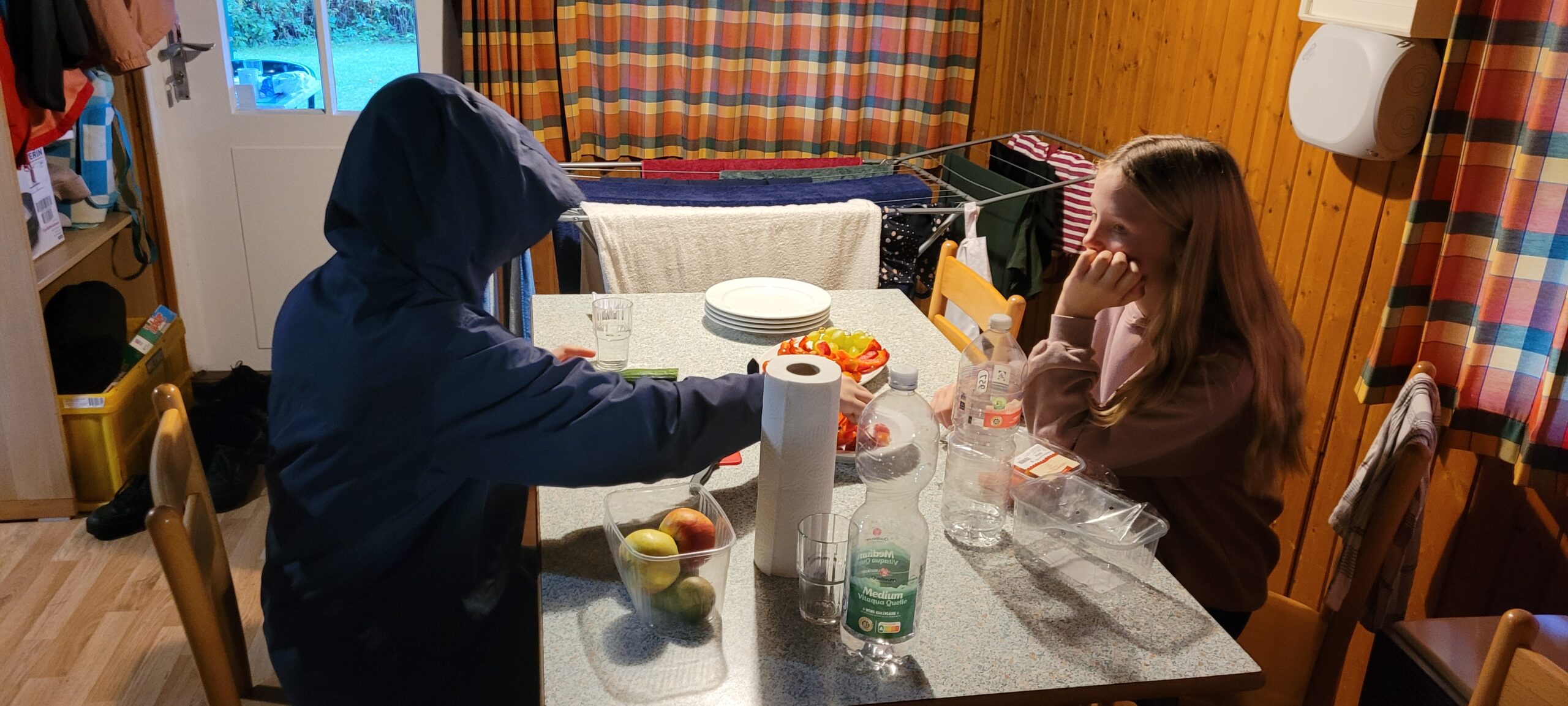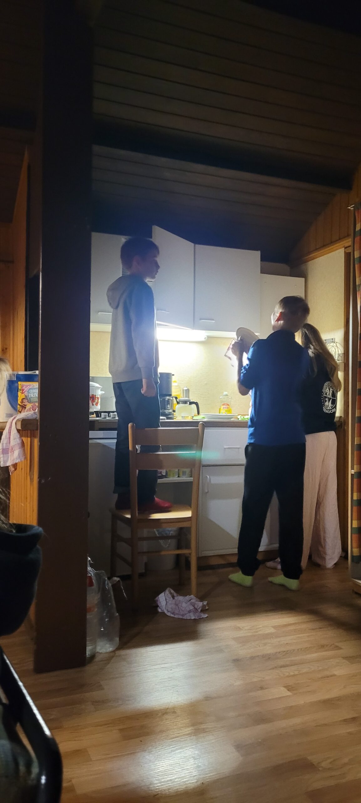 wir die Koffer zu den Häusern und erkundeten gespannt die Ferienanlage. Am Nachmittag bezogen wir dann die Häuser und richteten uns ein. Dabei musste auch erstmal die Bettenaufteilung besprochen werden. Abends ging es dann ans 1. Mal kochen – Nudeln mit Tomatensoße. Die Kids waren motiviert und haben die Aufgabe mit Bravour gemeistert. Danach musste auch der Abwasch erledigt werden. Dafür fanden sich gleich zwei Freiwillige. Nach mehreren Runden „Werwolf“ war es Zeit ins Bett zu gehen.