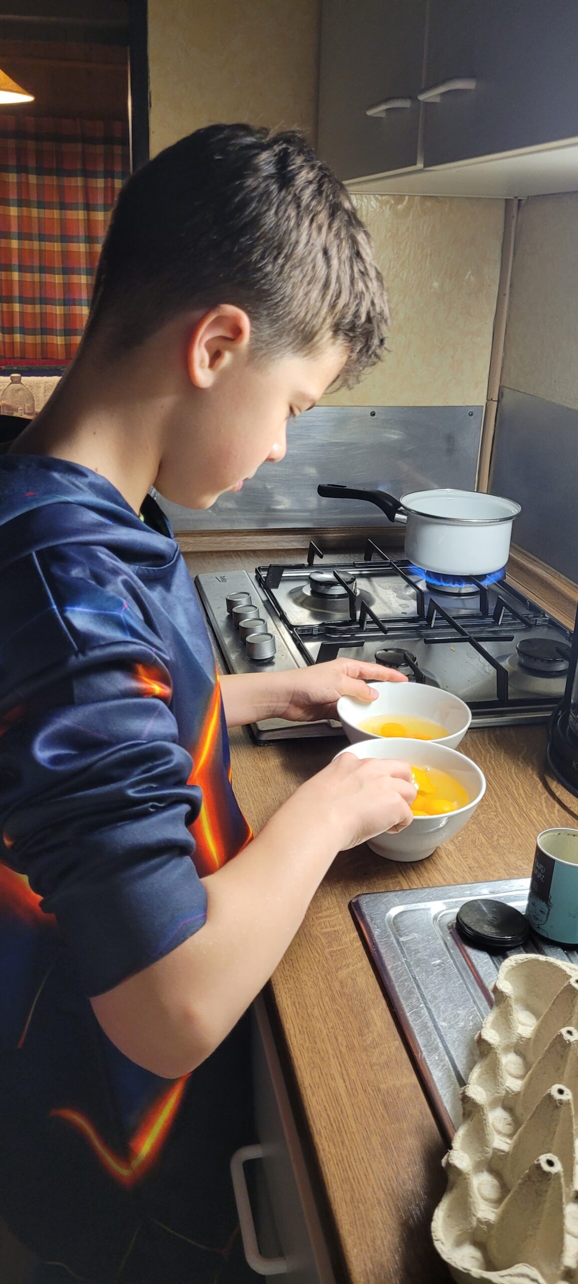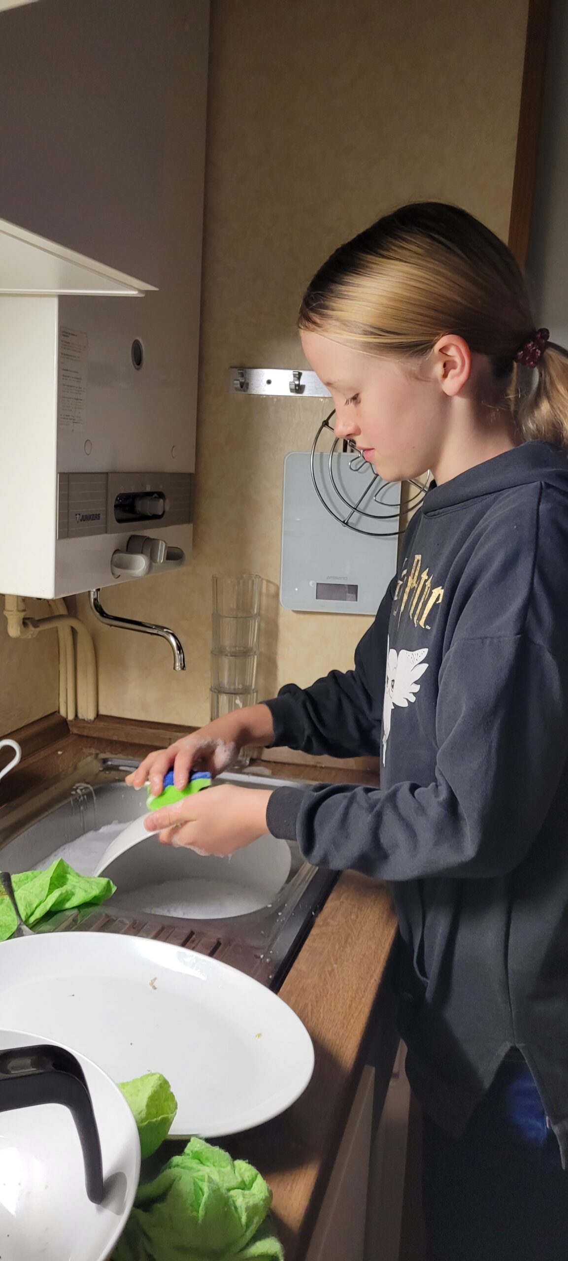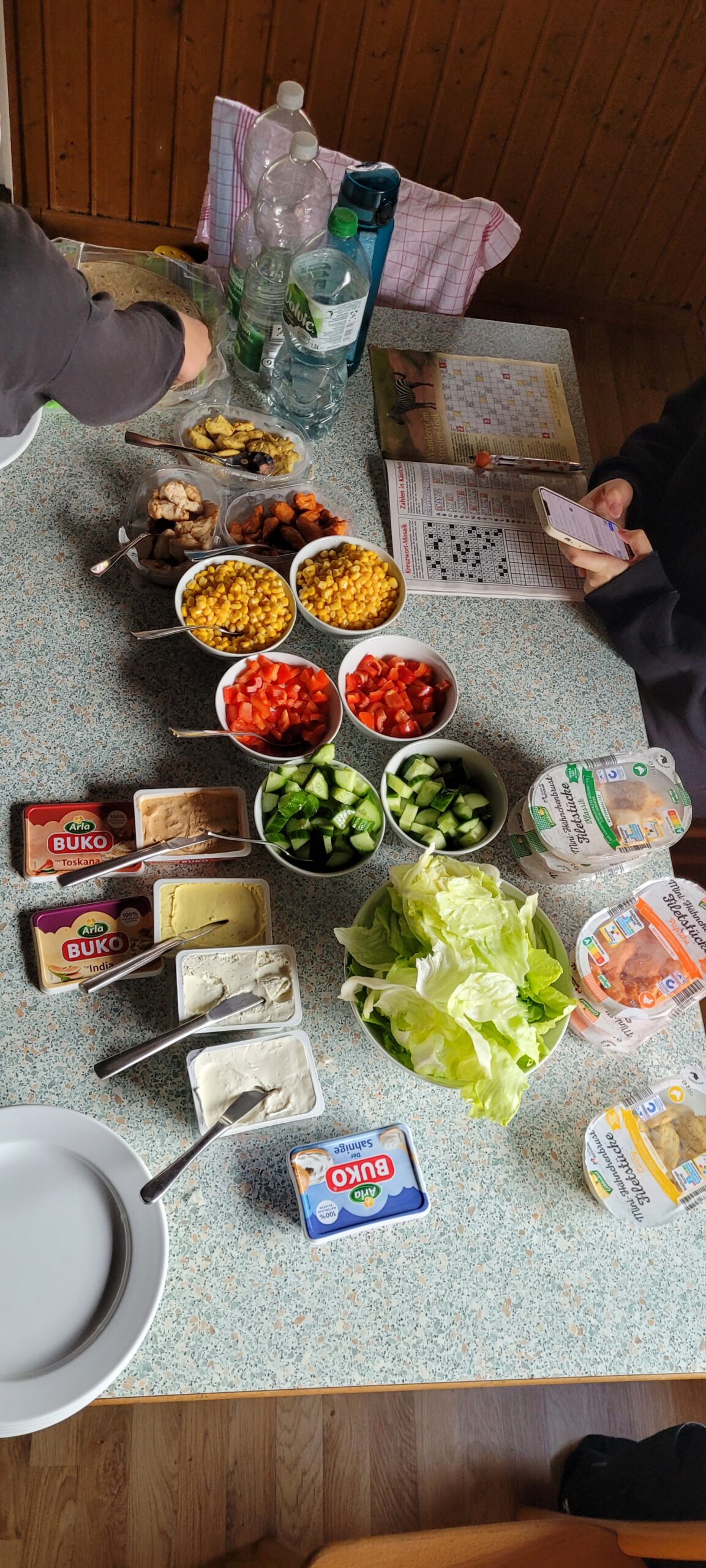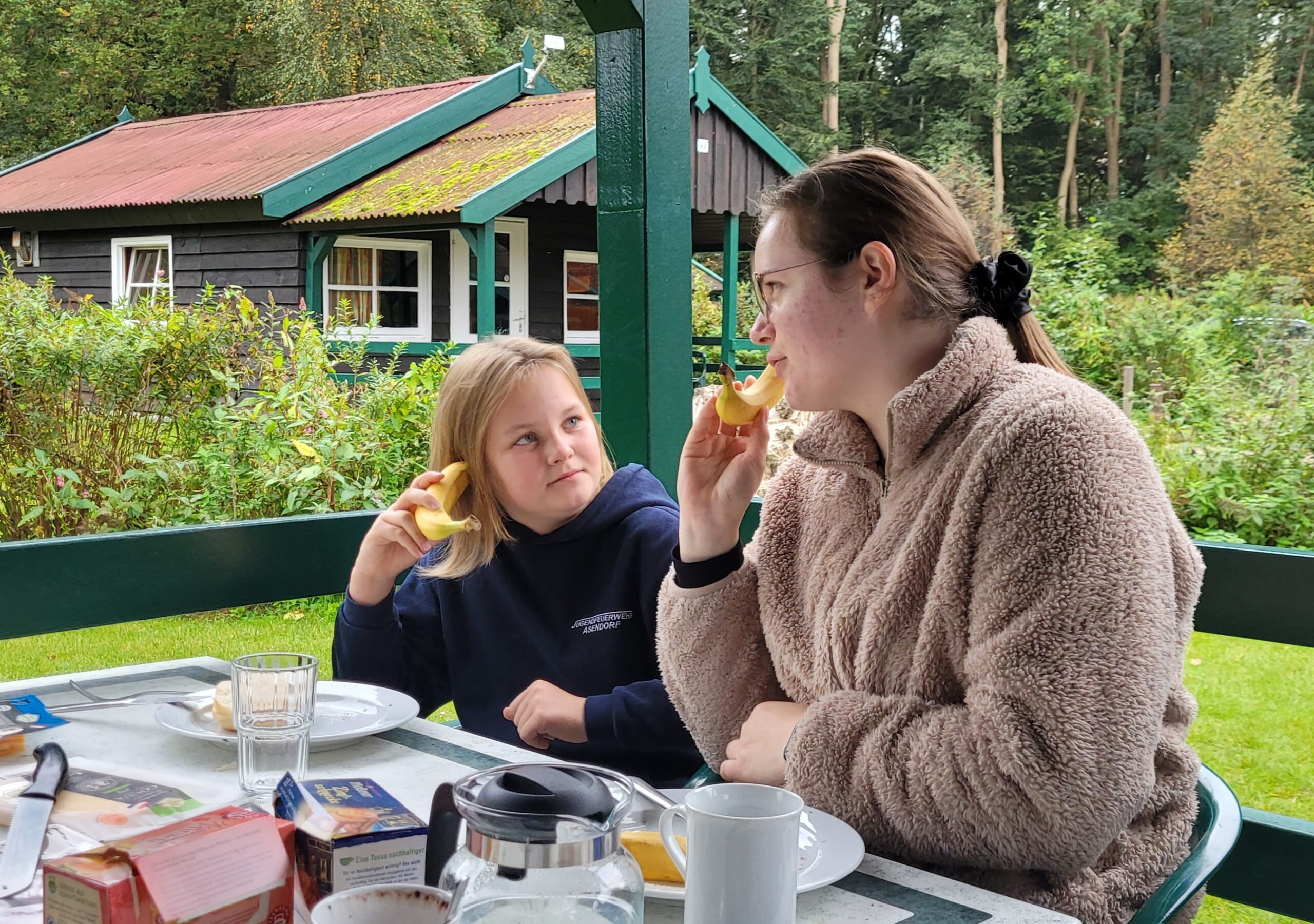 wir die Koffer zu den Häusern und erkundeten gespannt die Ferienanlage. Am Nachmittag bezogen wir dann die Häuser und richteten uns ein. Dabei musste auch erstmal die Bettenaufteilung besprochen werden. Abends ging es dann ans 1. Mal kochen – Nudeln mit Tomatensoße. Die Kids waren motiviert und haben die Aufgabe mit Bravour gemeistert. Danach musste auch der Abwasch erledigt werden. Dafür fanden sich gleich zwei Freiwillige. Nach mehreren Runden „Werwolf“ war es Zeit ins Bett zu gehen.