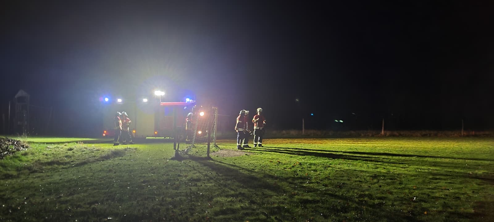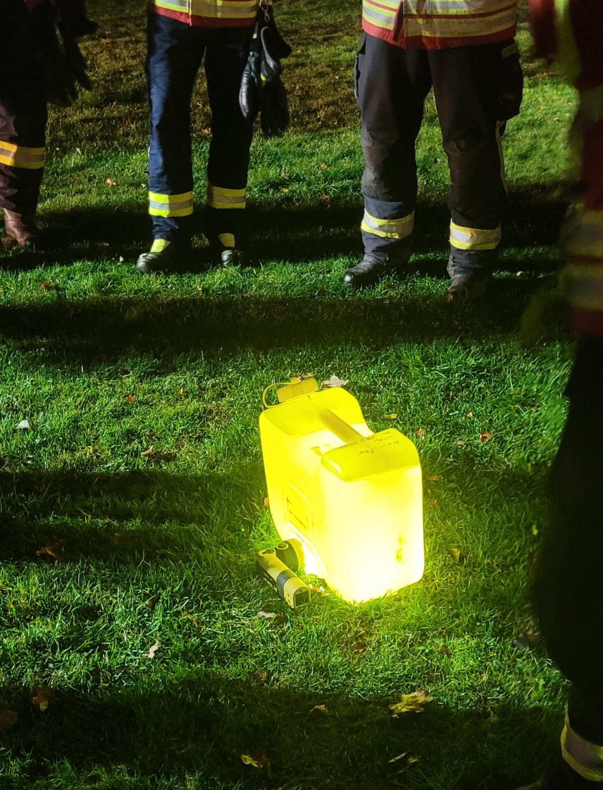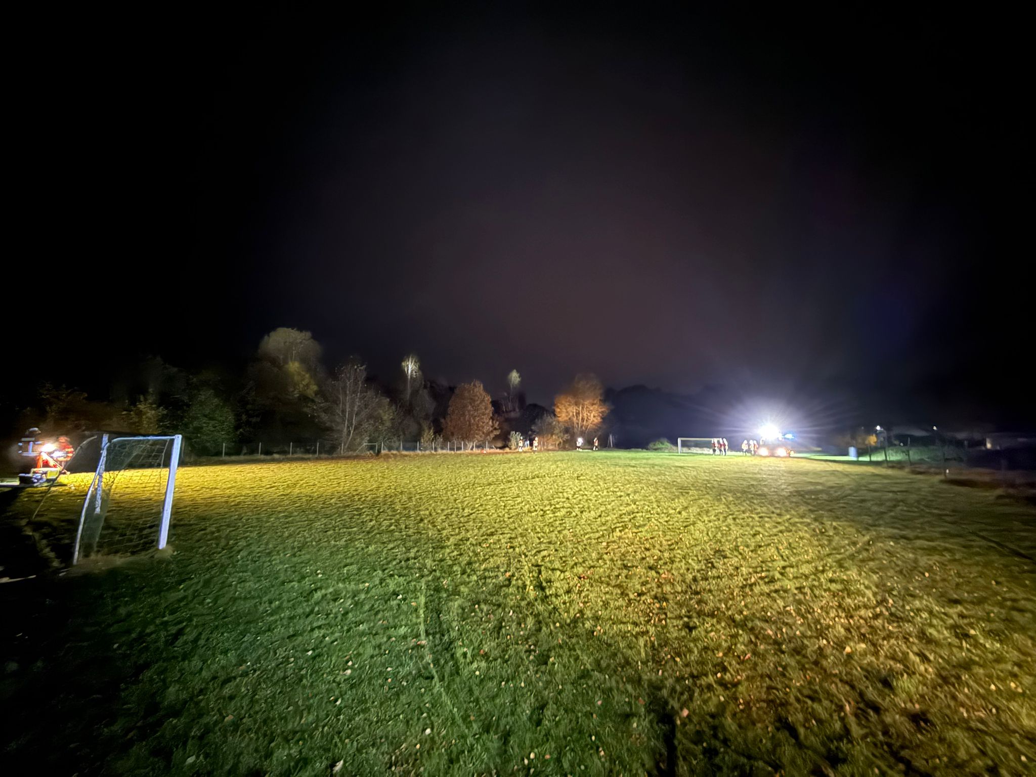 Im anschließenden Praxisteil wurde ein Landeplatz für die Nacht vorbereitet. Dabei probierten die Einsatzkräfte verschiedene Möglichkeiten aus, um den Platz sicher und gut sichtbar zu kennzeichnen – von der Beleuchtung mit Fahrzeugen und Handscheinwerfern bis hin zum Einsatz von LED-Leuchten und Absperrmaterial.