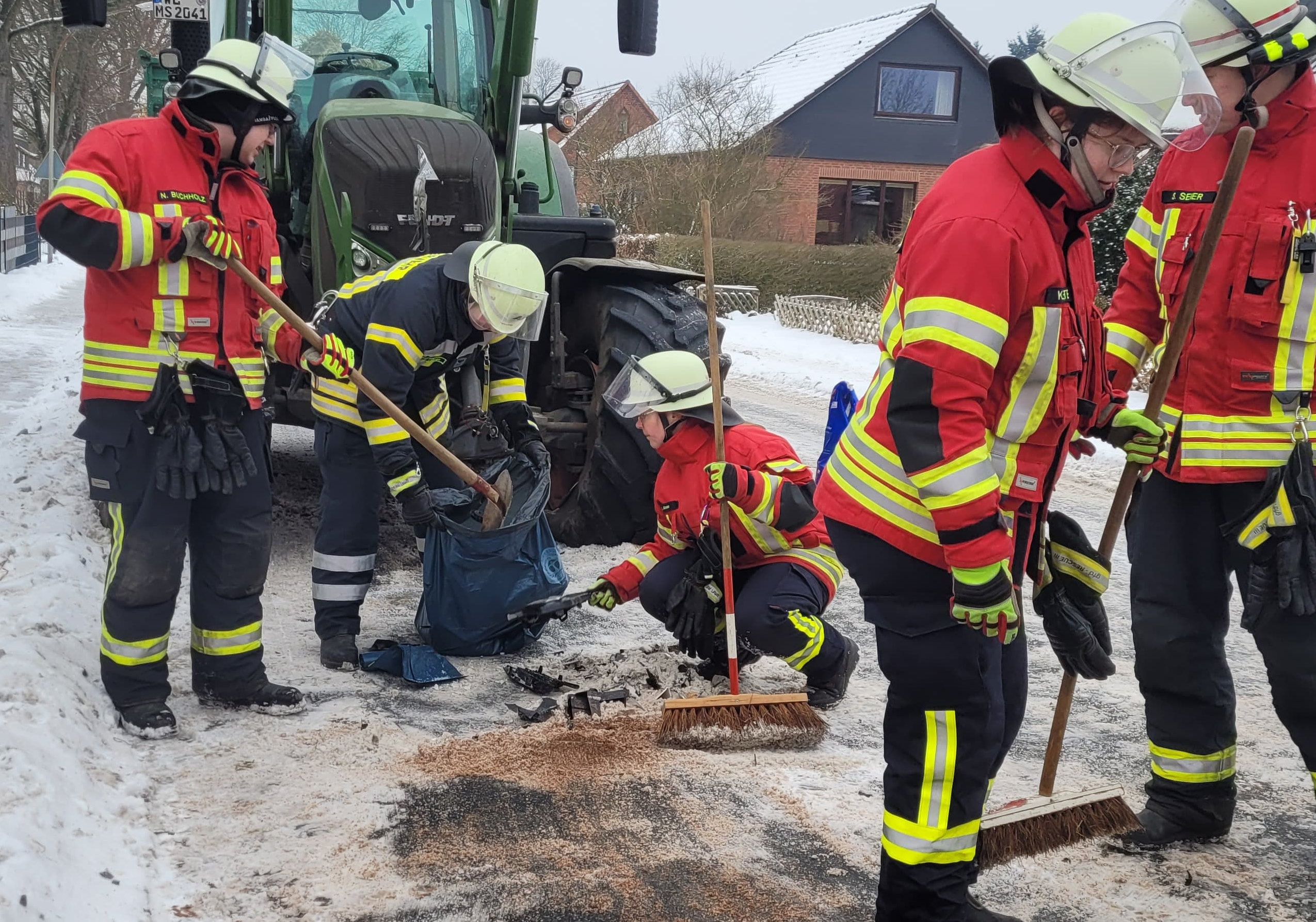Am Donnerstagvormittag sind in der Schulstraße in Asendorf ein Traktor und ein PKW, aus bisher unbekannter Ursache, frontal zusammengeprallt. Neben dem Rettungsdienst und der Polizei wurde die Feuerwehr Asendorf zur Unfallstelle alarmiert. Ein Ford war neben dem Traktor und dem Renault ebenfalls am Unfallgeschehen beteiligt. Die Fahrerin des Renault wurde bei dem Unfall verletzt und in ein Krankenhaus transportiert. Die Schwere der Verletzungen ist der Feuerwehr nicht bekannt. Der Traktorfahrer wurde nicht verletzt. Die Feuerwehrkräfte nahmen beim Eintreffen eine Rauchentwicklung an der Batterie des Renault war. Der Schwelbrand konnte durch das Abtrennen der Batterie beseitigt werden. Als weitere Maßnahmen wurde der Brandschutz sichergestellt und auslaufende Betriebsstoffe abgestreut, sowie erste Aufräumarbeiten durchgeführt. Der PKW und auch der Traktor wurden schwer beschädigt und waren nicht mehr fahrbereit. Zur Unfallursache und der Schadenshöhe hat die Polizei die Ermittlungen aufgenommen.